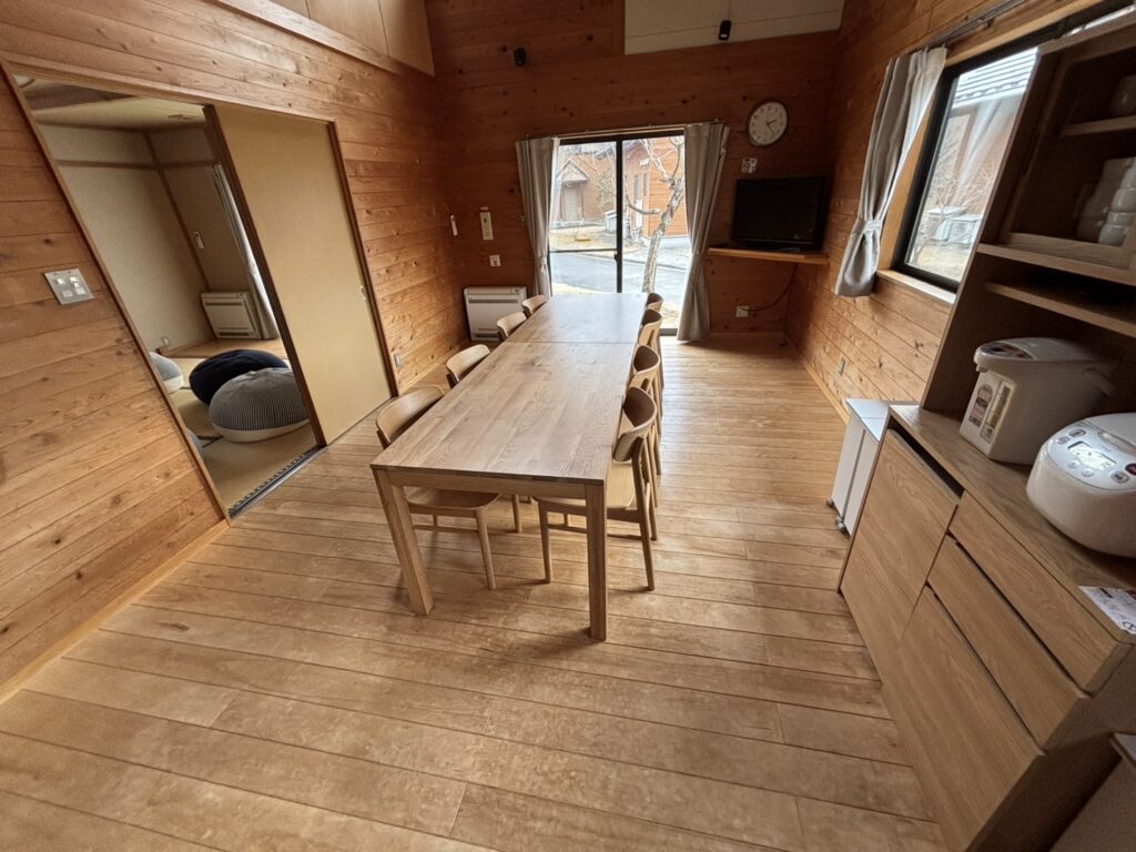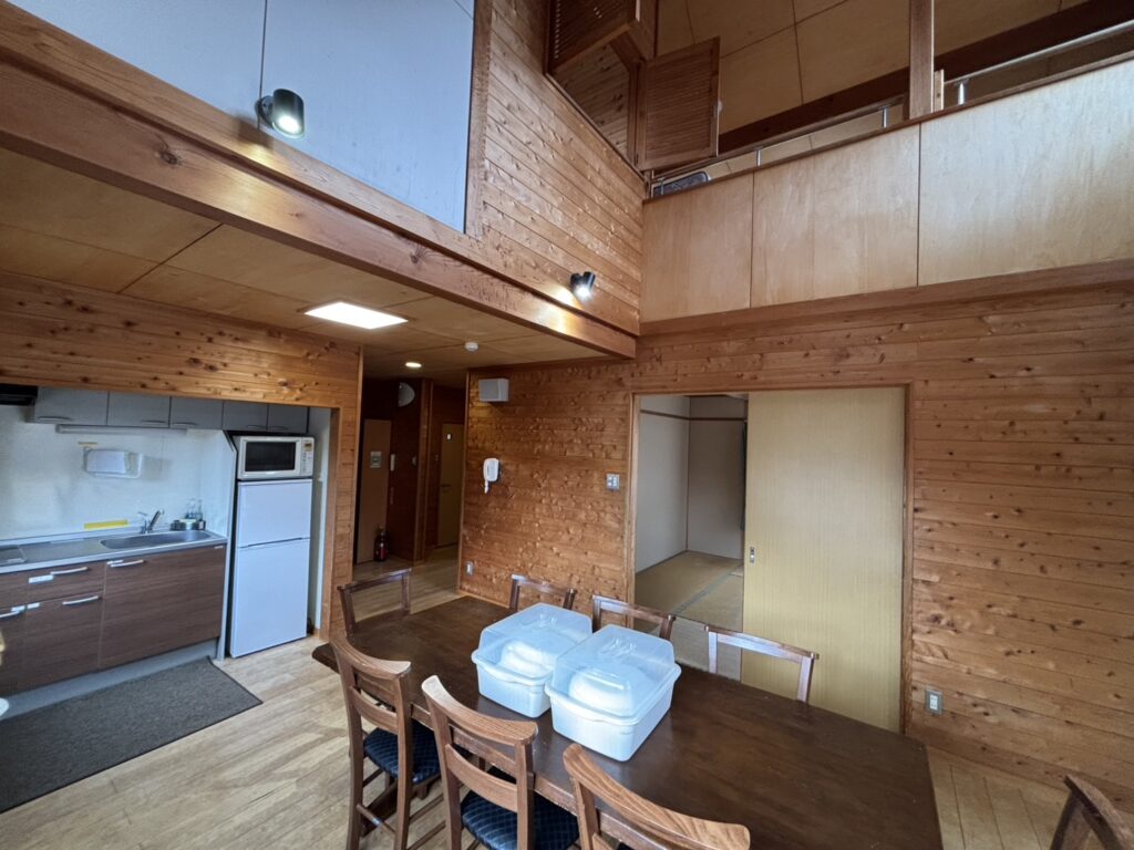 こちらのキッチンもファミリーキャビンと同様に、充実した調理器具と食器類が揃っています。寝室は、ベッド4台とエキストラベッド1台がある洋室16帖の大部屋、和室10帖の寝室、洋室6帖の小部屋などがあり、大人数でもしっかりとプライベートな空間を確保しながら休むことができます。各棟に野外炉があり、屋外でBBQを楽しめます。
